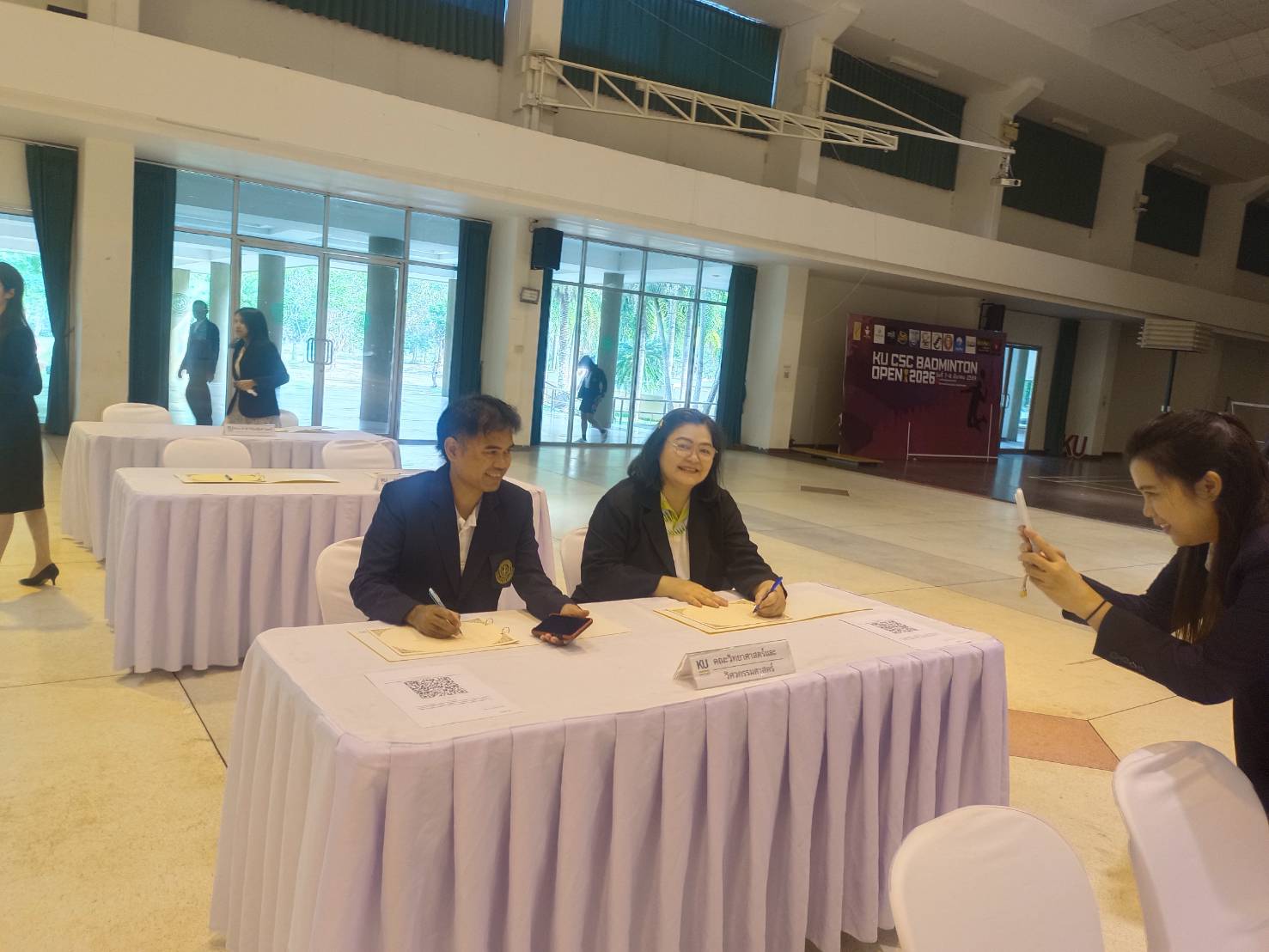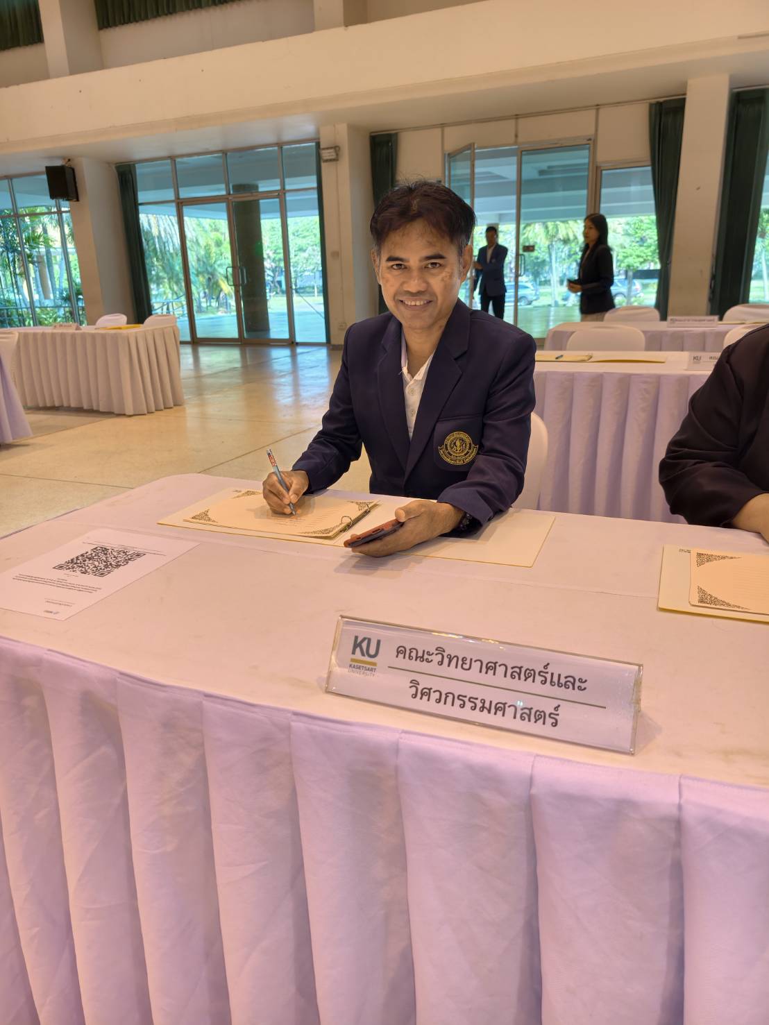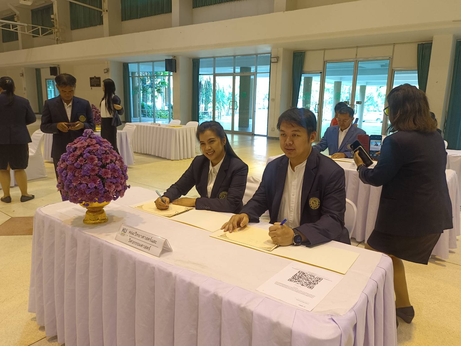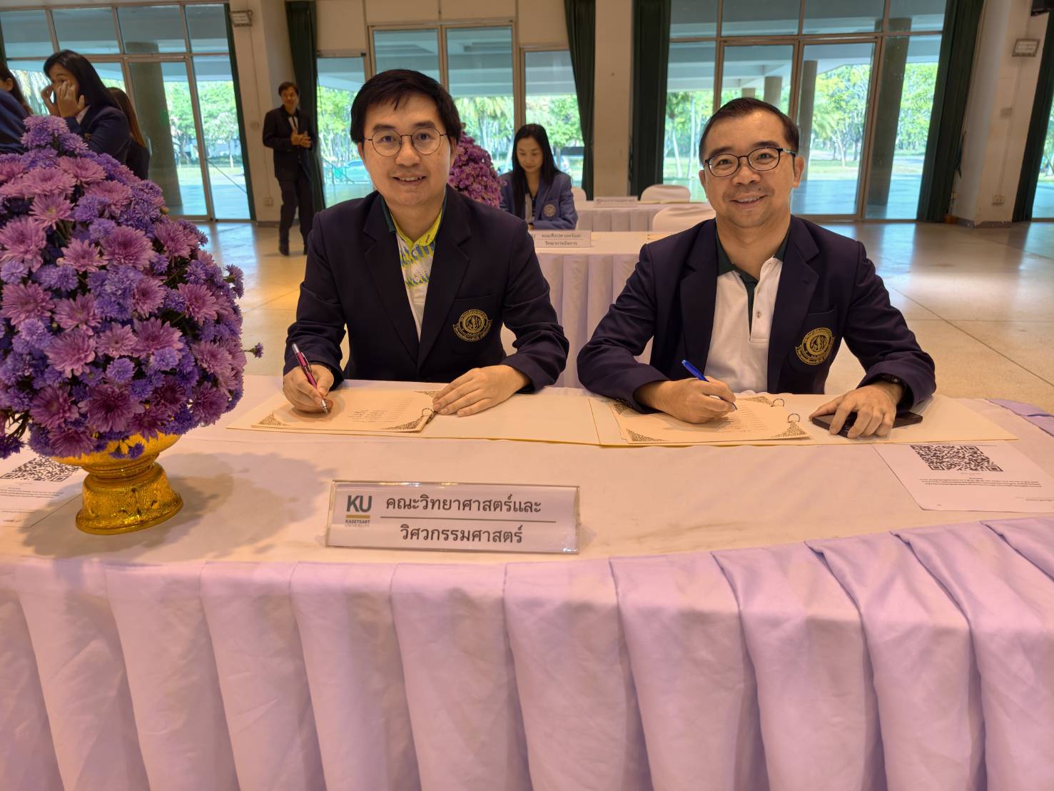 พร้อมผู้บริหาร คณาจารย์ บุคลากร และองค์กรกิจกรรมนิสิต รวมทั้งผู้แทนนิสิตมหาวิทยาลัยเกษตรศาสตร์ วิทยาเขตเฉลิมพระเกียรติ จังหวัดสกลนคร เข้าร่วมในพิธีและลงนามถวายพระพร โดยพร้อมเพรียงกัน