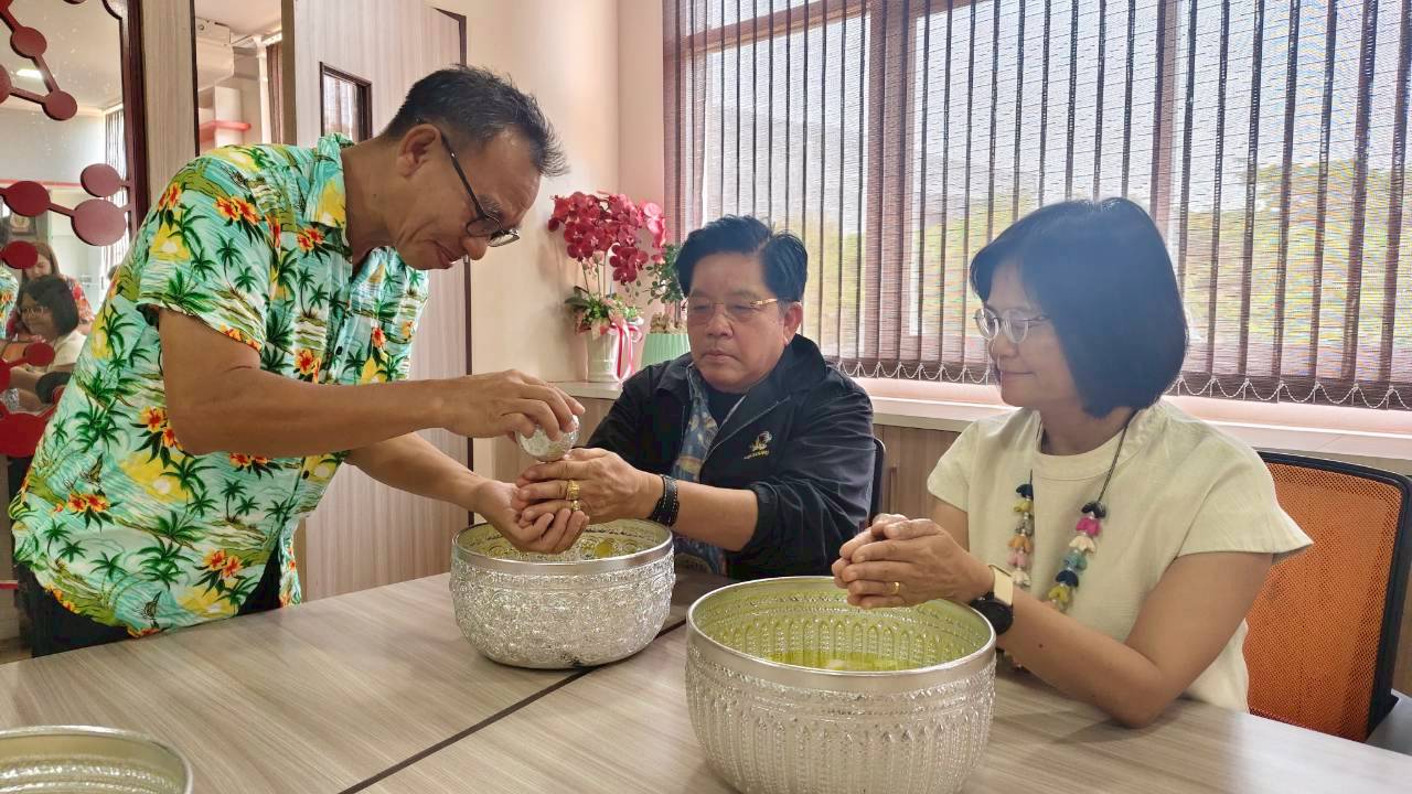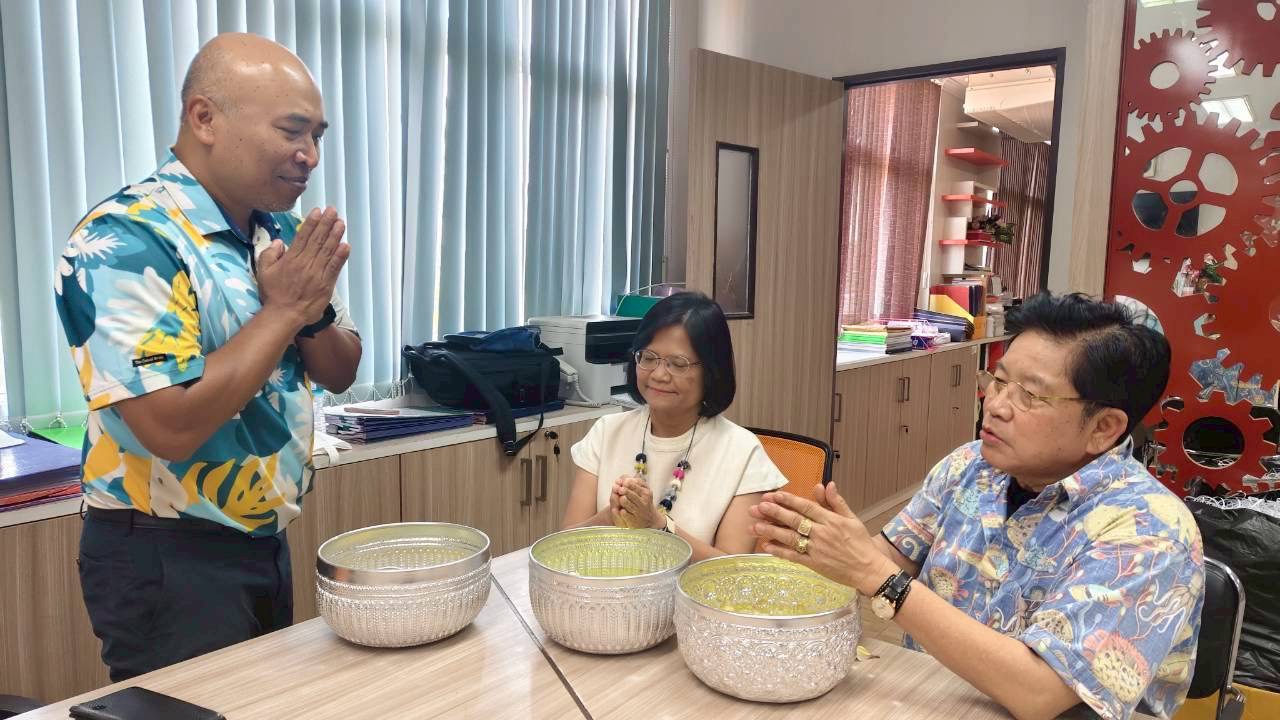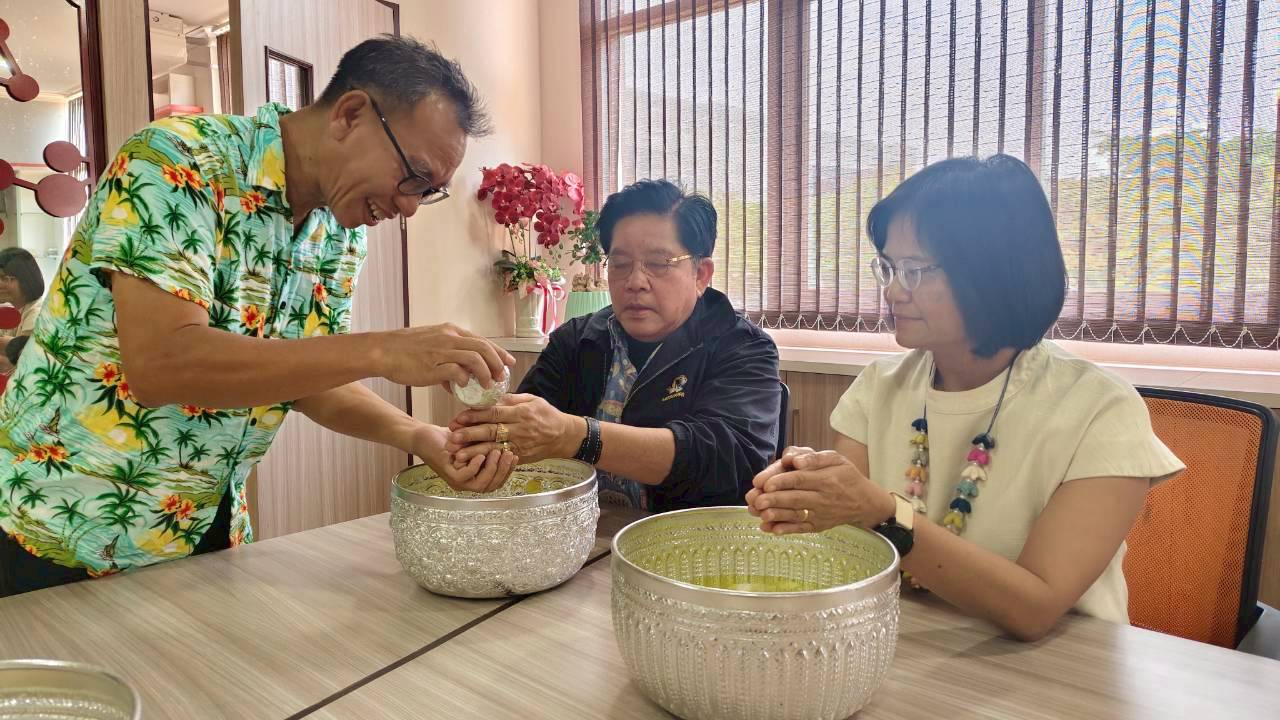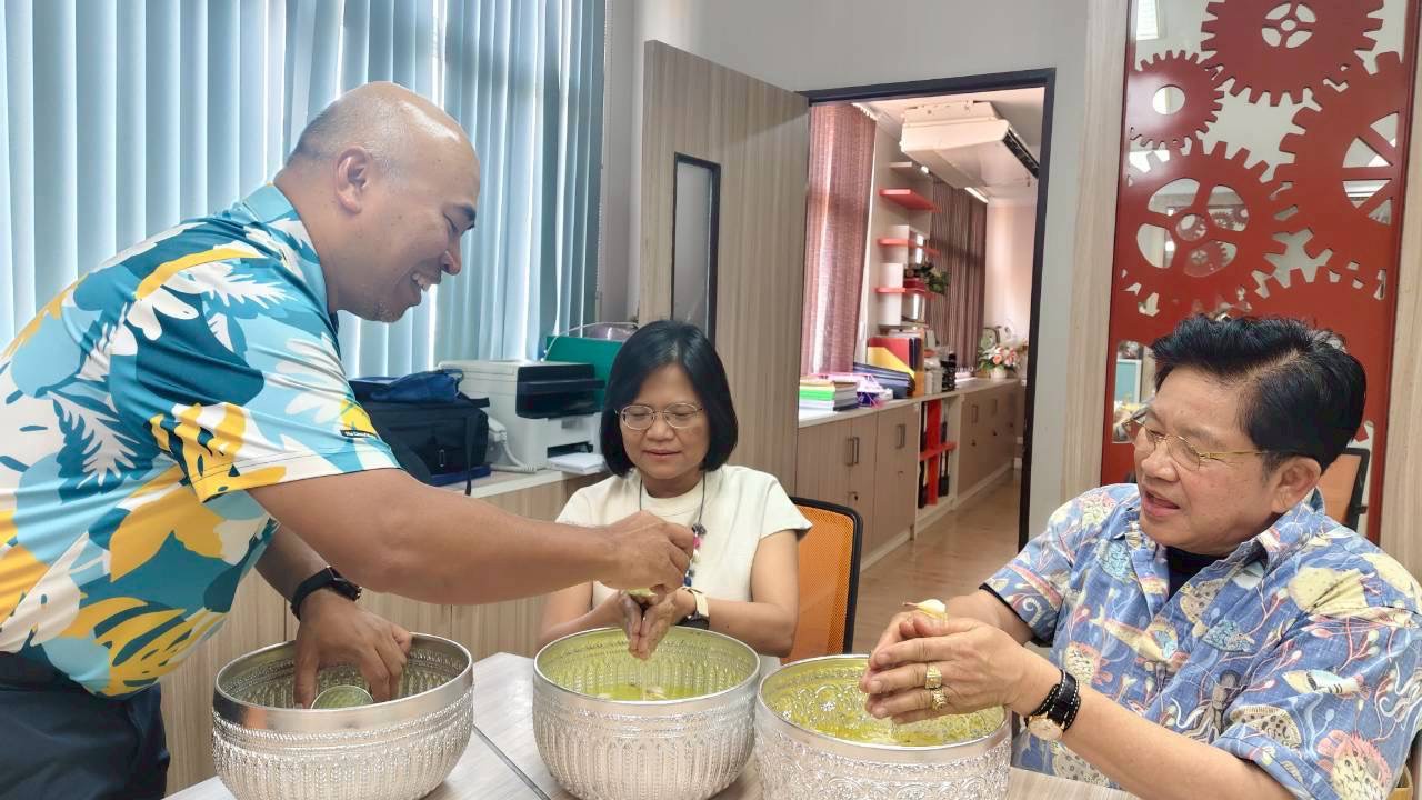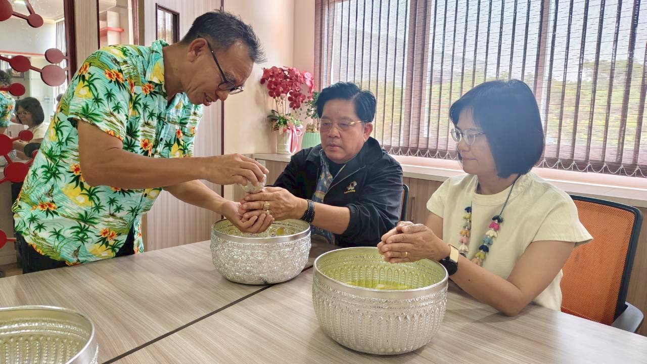 ผู้บริหาร คณาจารย์ และบุคลากร KUSE ร่วมใจรดน้ำและรับคำอวยพร จาก ร.พิทักษ์ ปักษานนท์ ผู้ทรงคุณวุฒิ