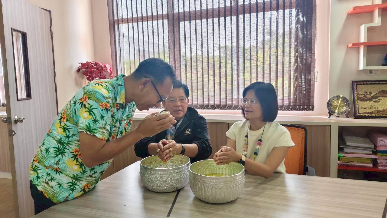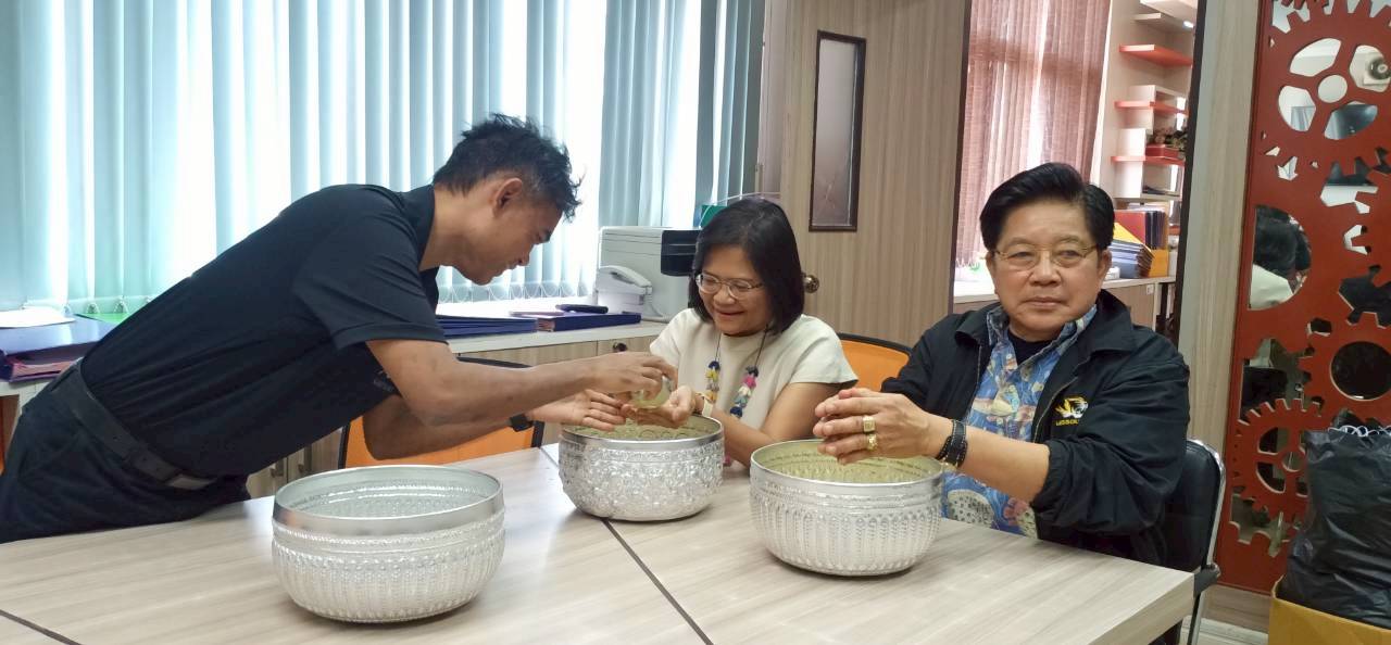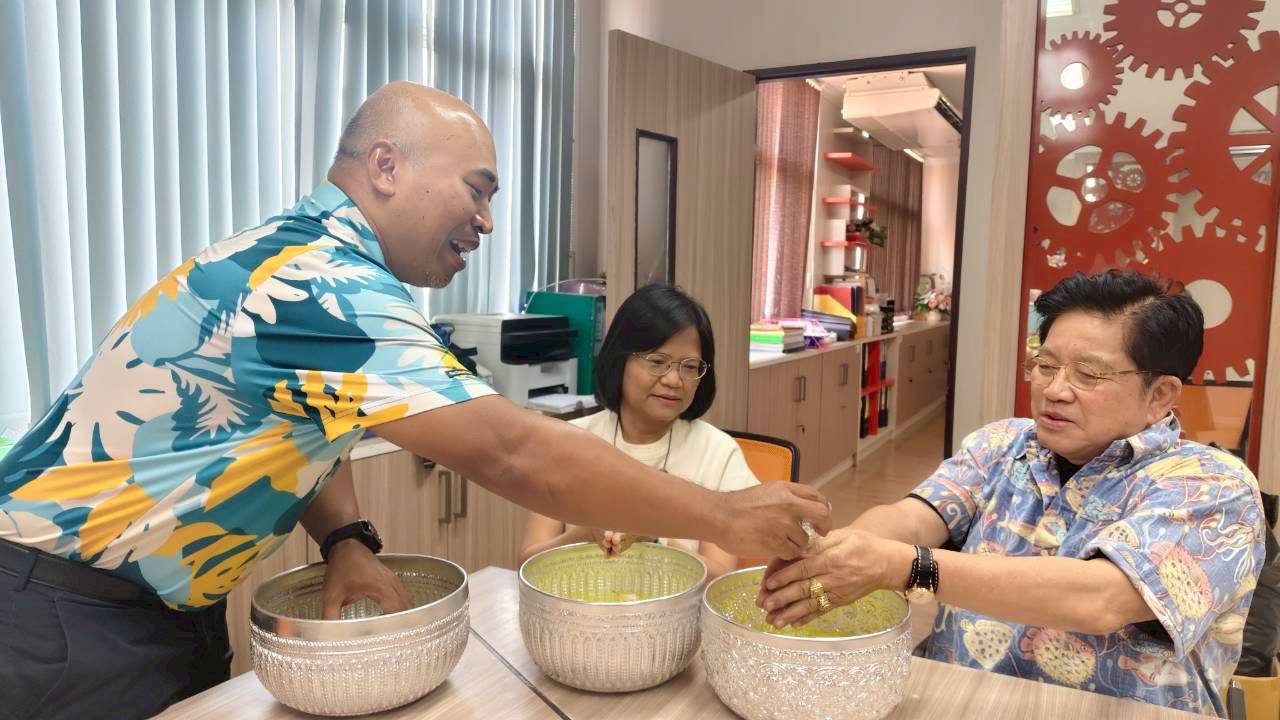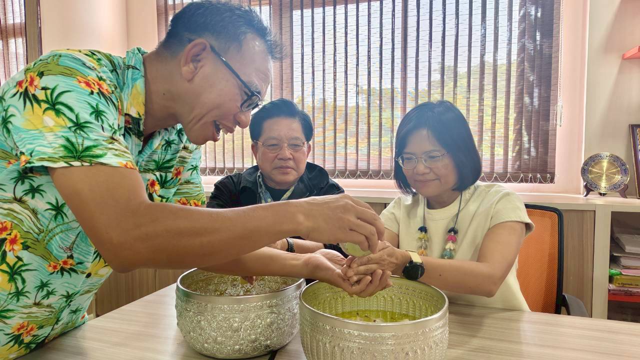 ผู้บริหาร คณาจารย์ และบุคลากร KUSE ร่วมใจรดน้ำและรับคำอวยพร จาก ร.พิทักษ์ ปักษานนท์ ผู้ทรงคุณวุฒิ