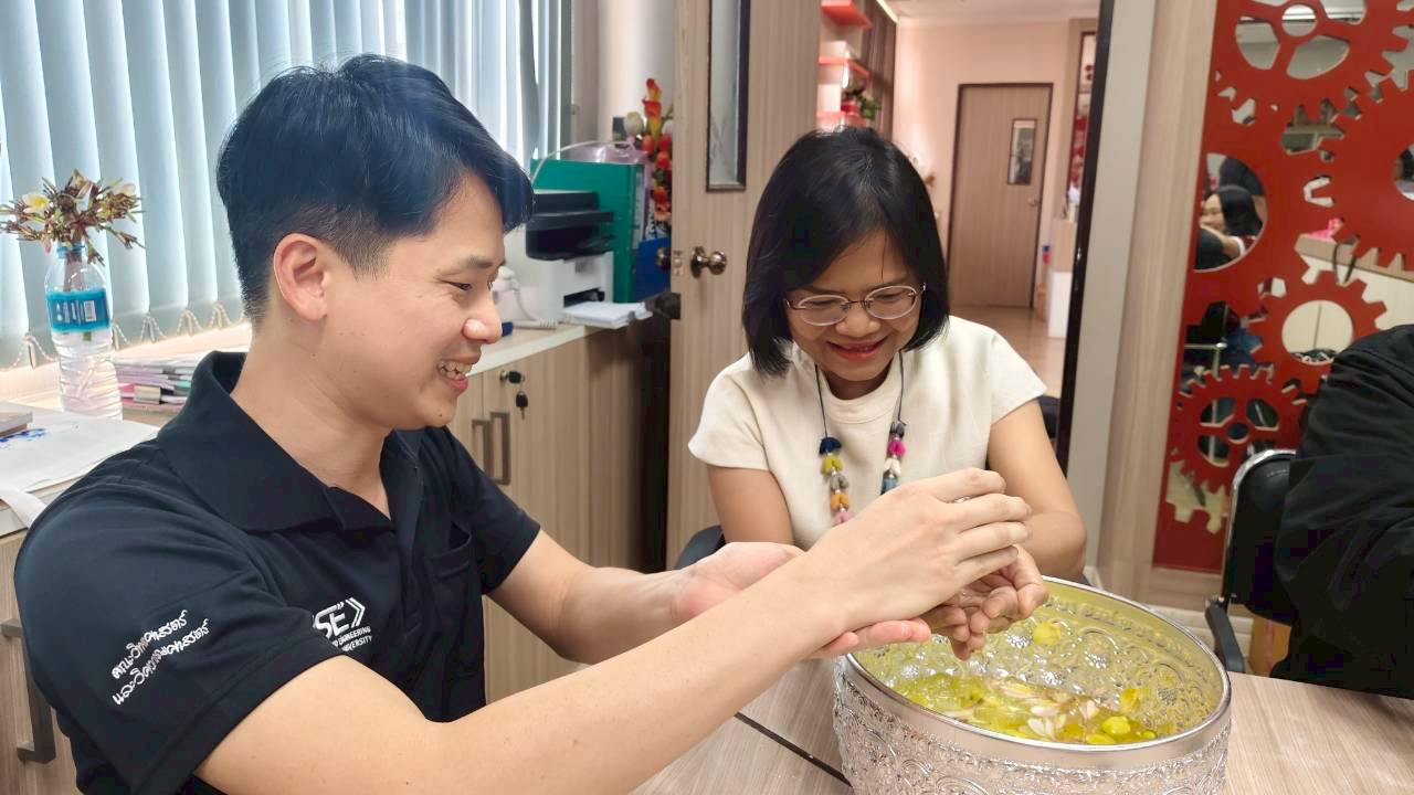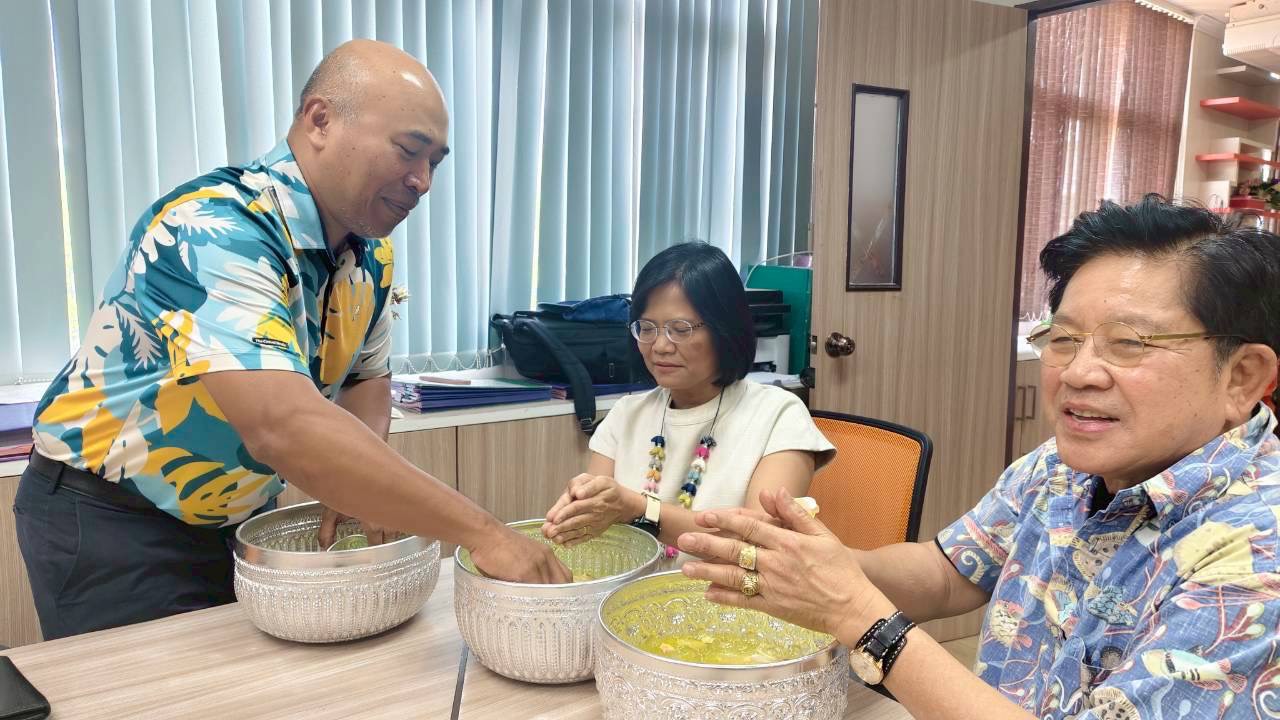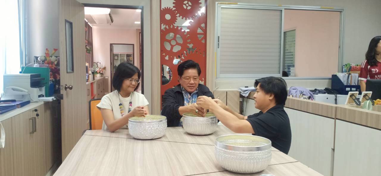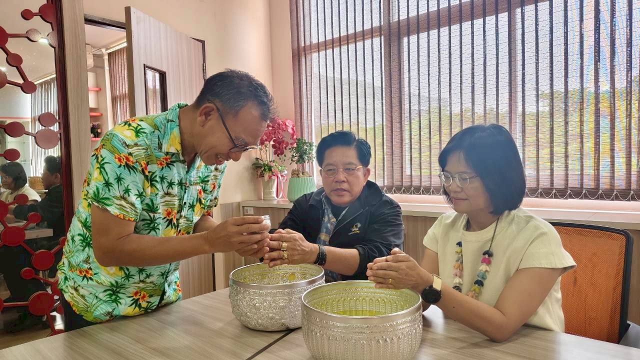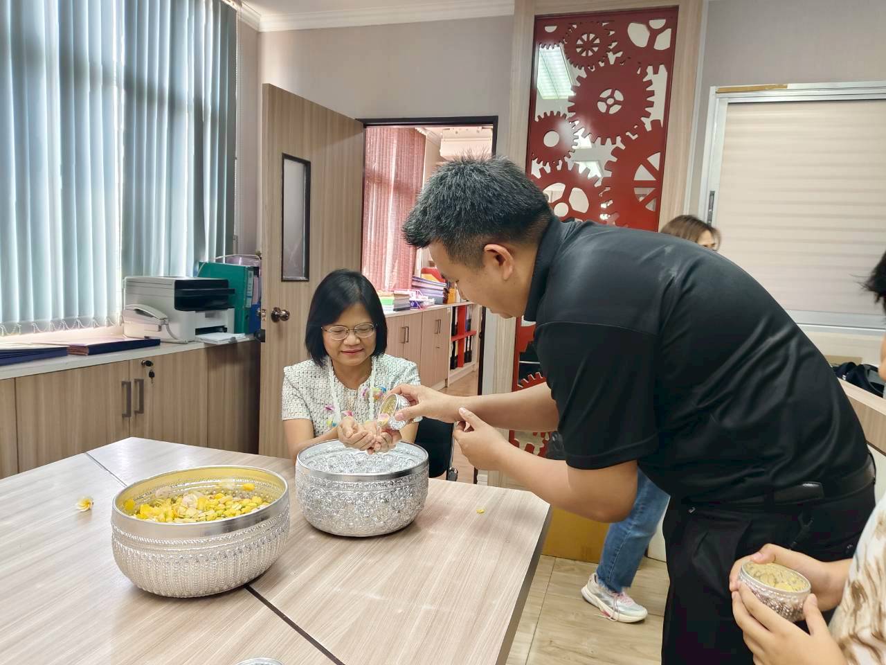 ผู้บริหาร คณาจารย์ และบุคลากร KUSE ร่วมใจรดน้ำและรับคำอวยพร จาก ร.พิทักษ์ ปักษานนท์ ผู้ทรงคุณวุฒิ
